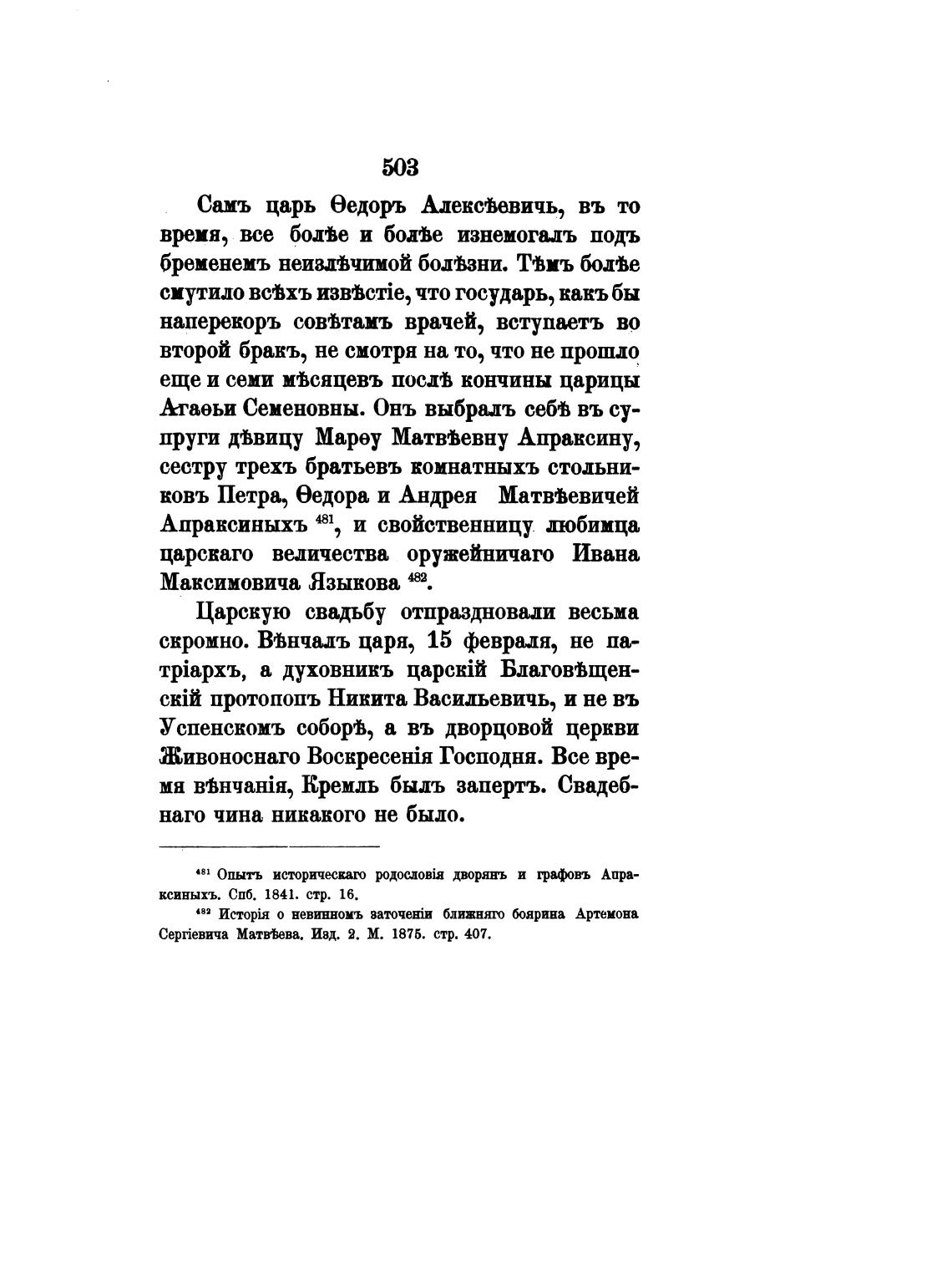 пруги дввицу Мареу Матвгвевну Апраксину,