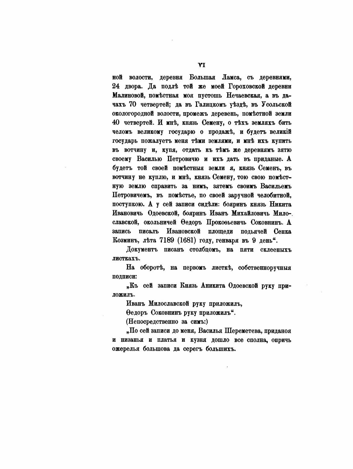 „По сей записи до меня, Василья Шереметева, приданоя