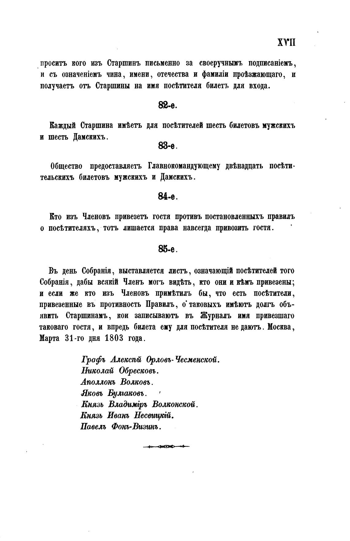 Каждый Старшина иметь для посмителей шесть бидетовъ мужскихъ