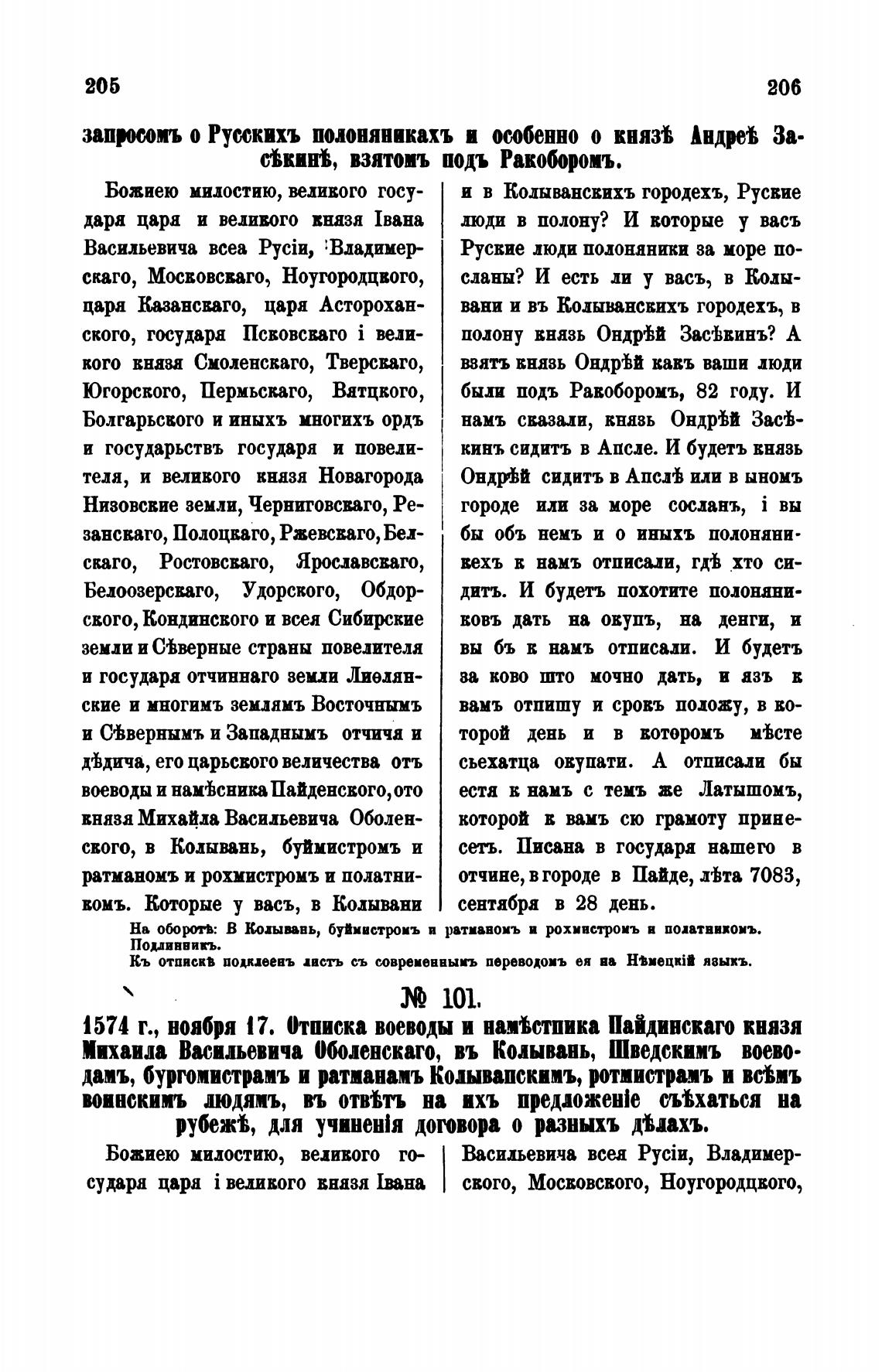 Кь отпискв подиееаъ австь съ современвыиъ переводоиъ ея ва Н%иецкт явывъ.