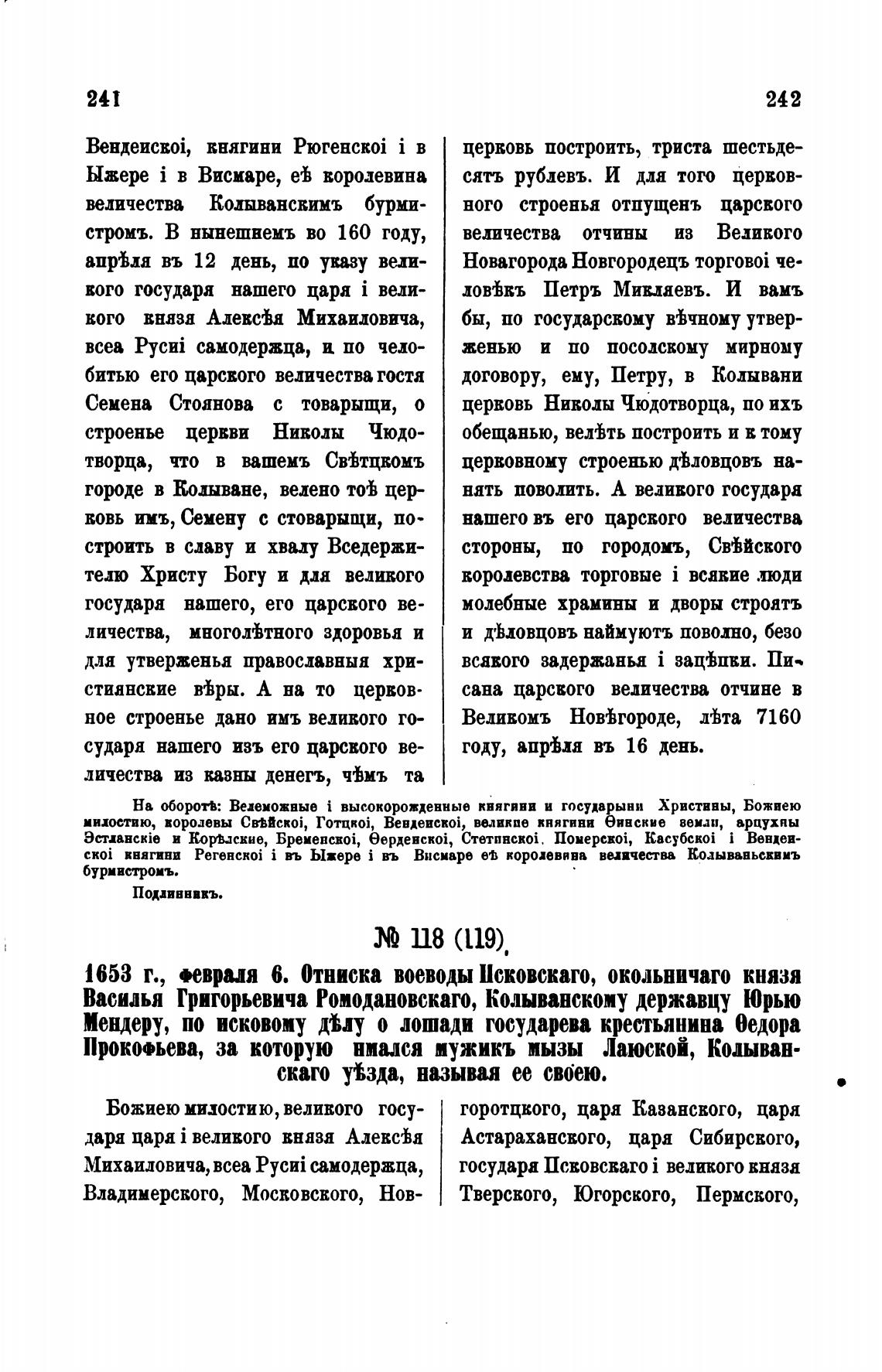 1653 г., «враля 6. Отниска воеводы Псковскаго, окольничаго князя