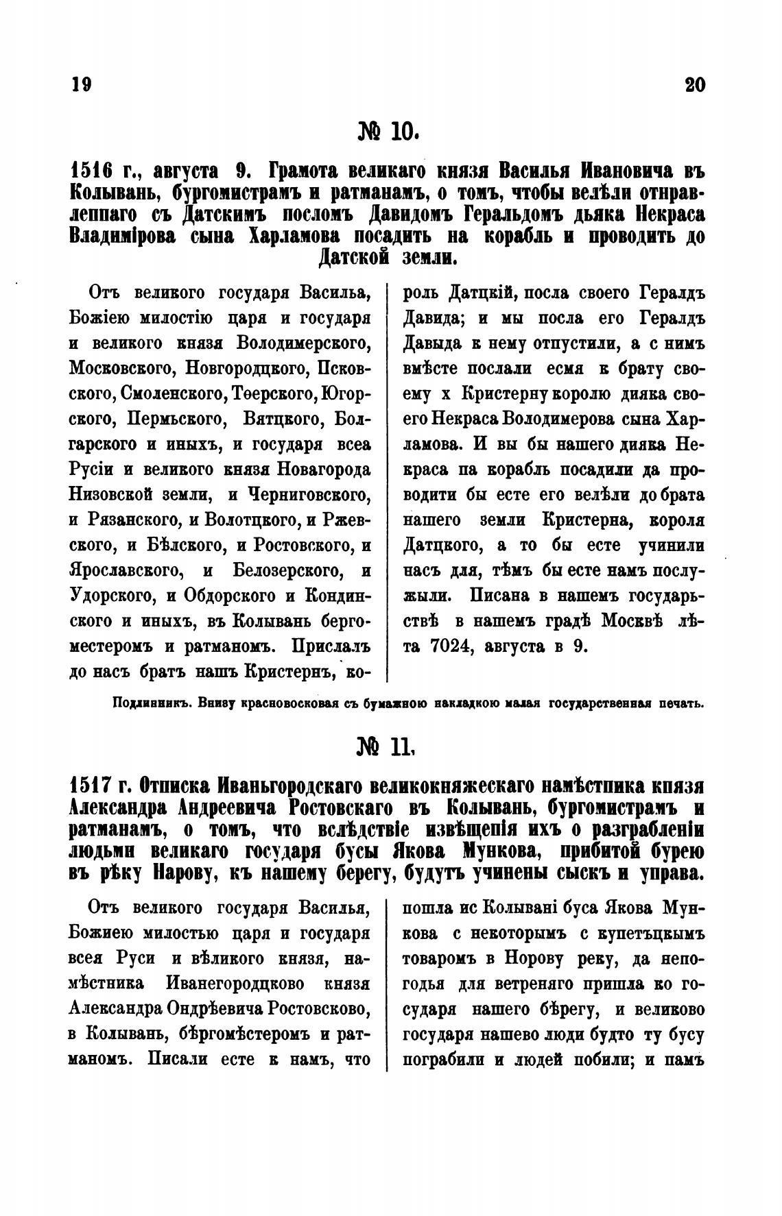 1516 г., августа 9. Грамота великаго князя Василья Ивановича въ