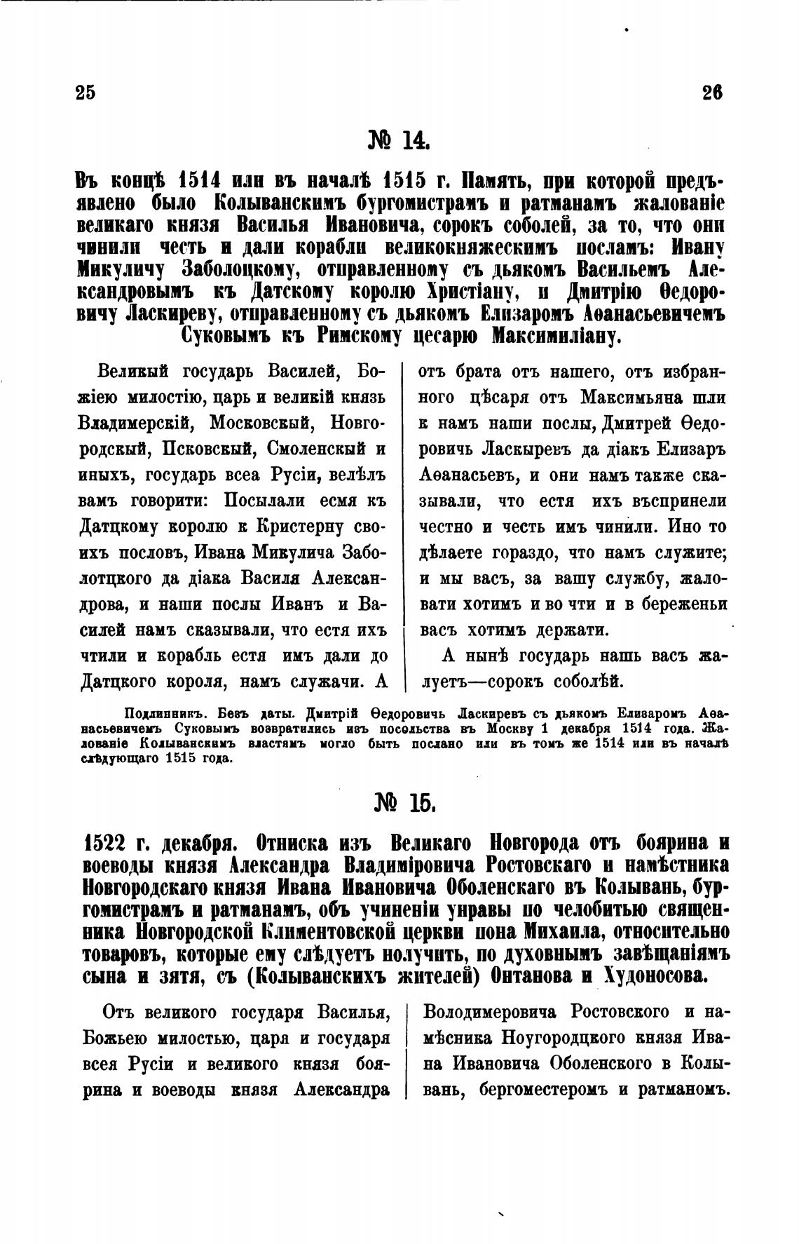 Въ конф 1514 или въ начал 1515 г. Память, при которой предъ-