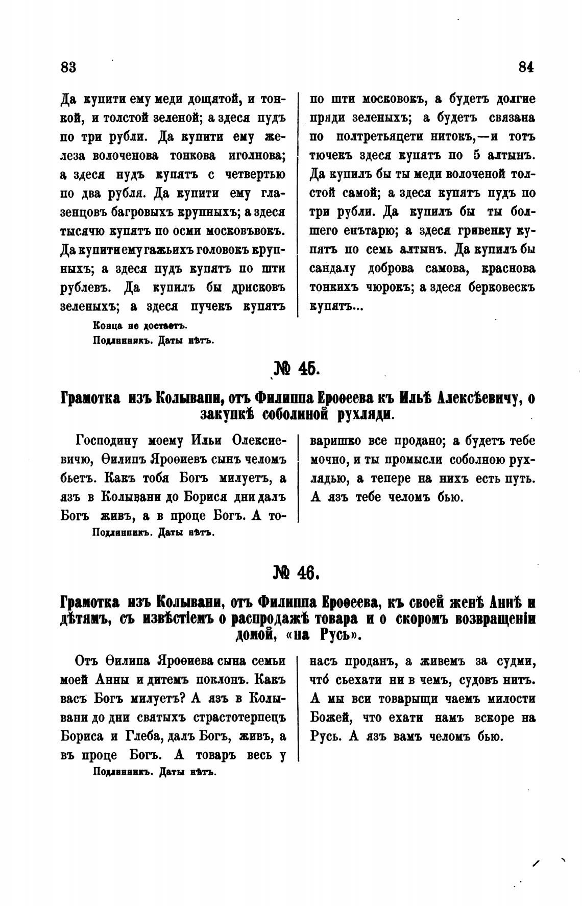 Грамотка изъ Колывани, отъ Филиппа Внеева, кь своей AHHi и