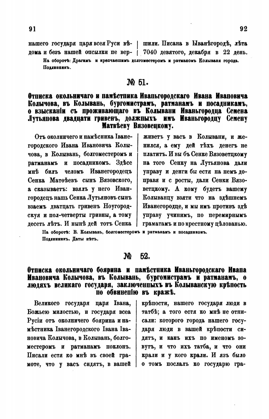 Ивановича Колычова, въ Колывань, бургомистрамъ и ратманапъ, о