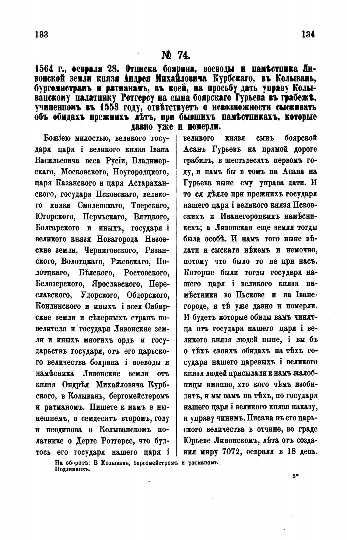 вонской земн князя Андрея Михайловича Курбскаго, въ Колывань,