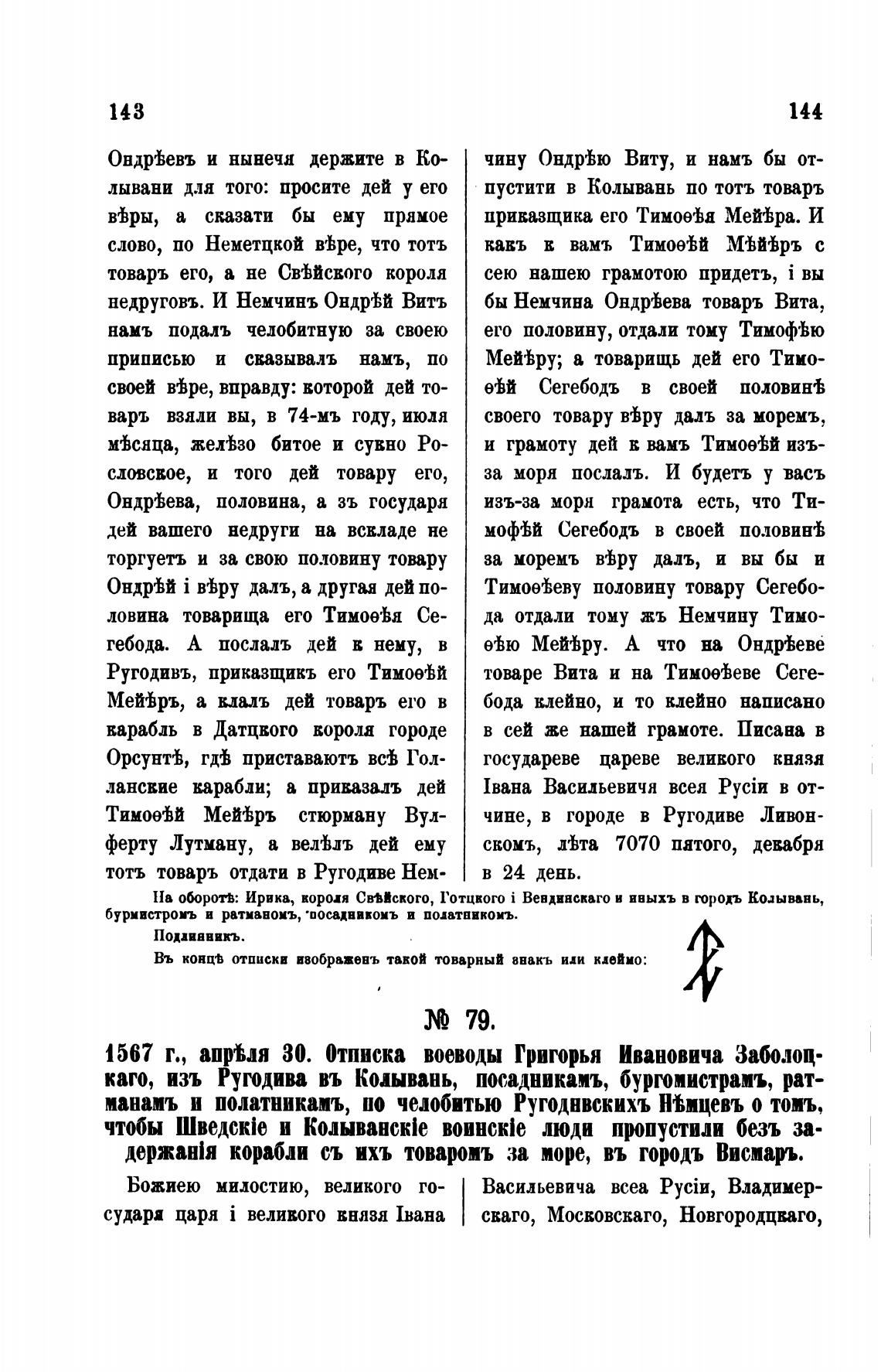 тотъ товаръ отдати в Ругодиве Нем-