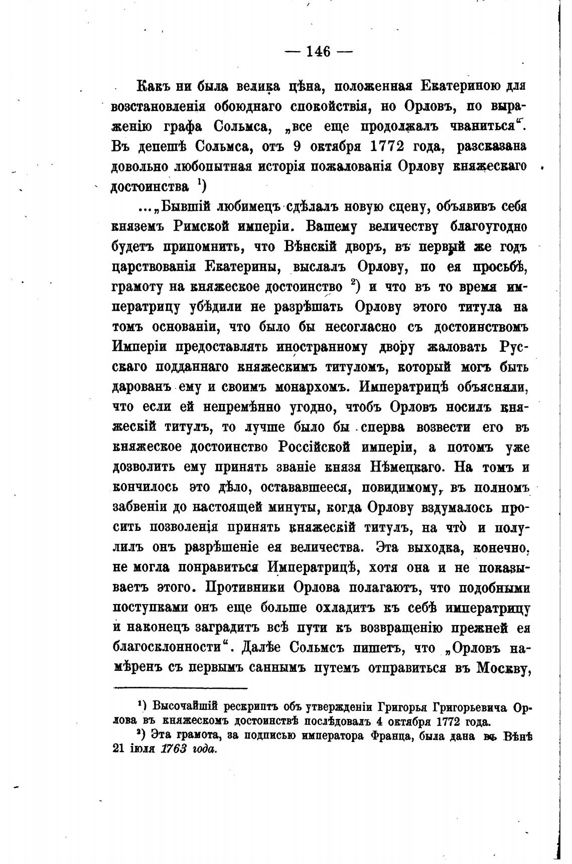 Въ депешЬ Сольмса, отъ 9 овтября 1772 года, разсвазана