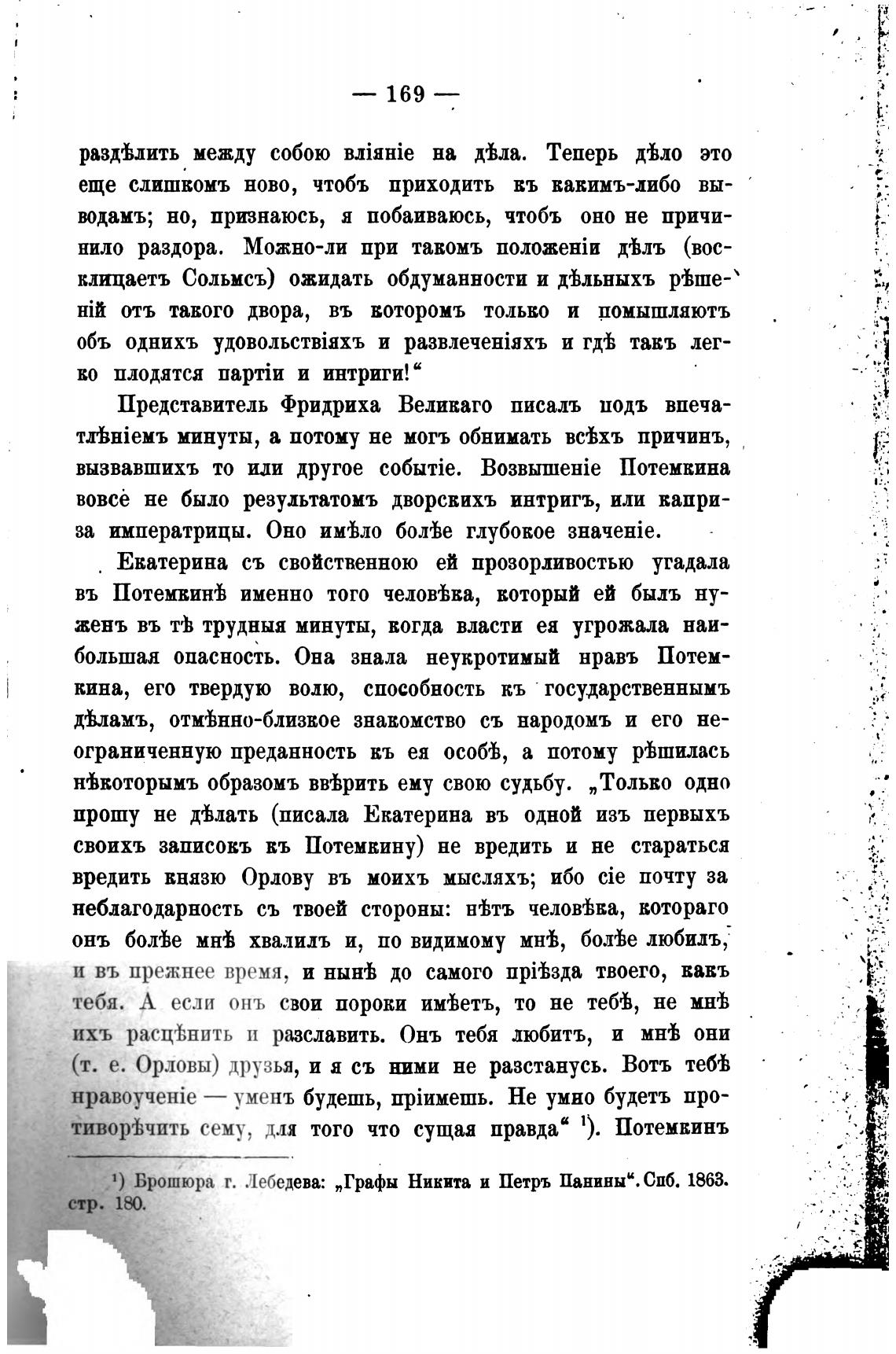1) Брошюра т. Лебедева: „Графы Никита и Петръ Панины“. СПб. 1863.