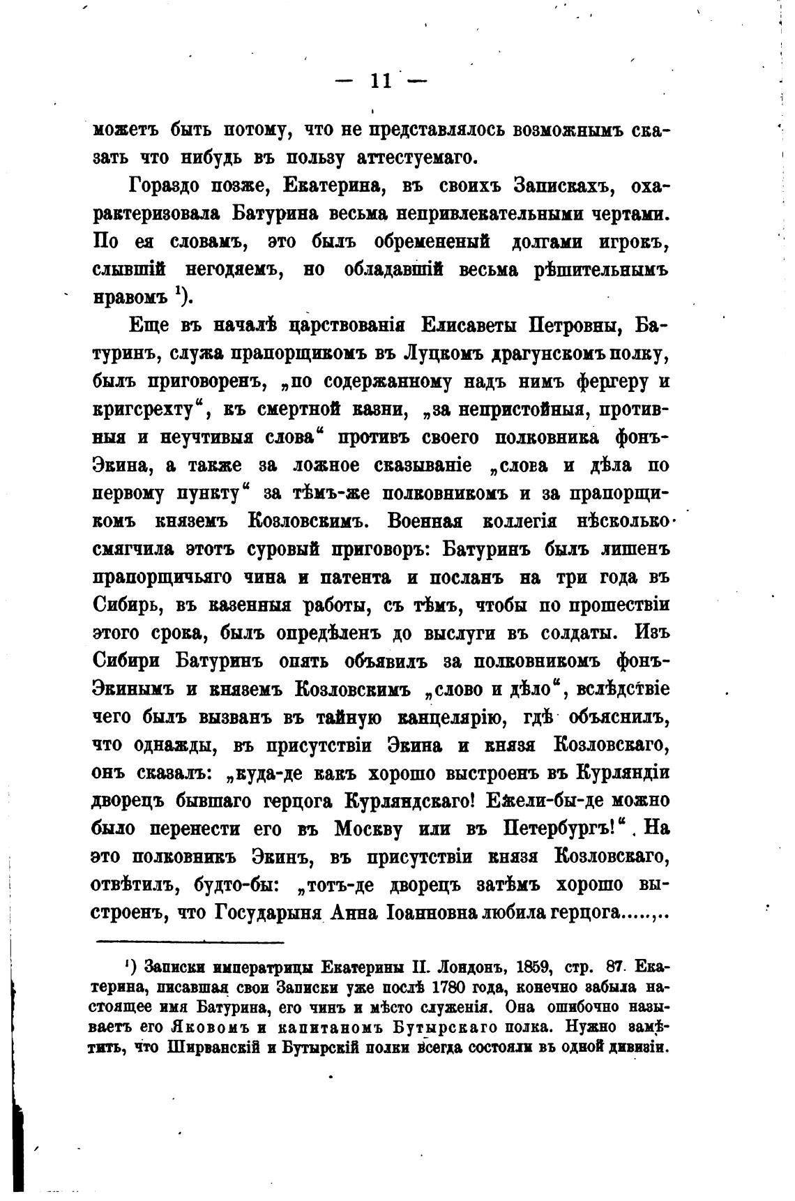 Гораздо позже, Екатерина, въ своихъ Записвахъ, оха-