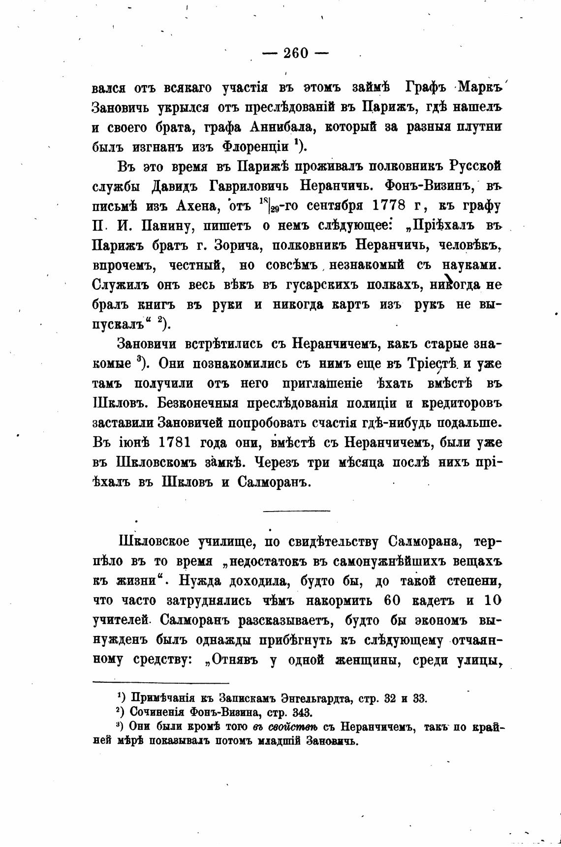 службы Давидъ Гавриловичь Неранчичь. Фонъ-Визинъ, въ