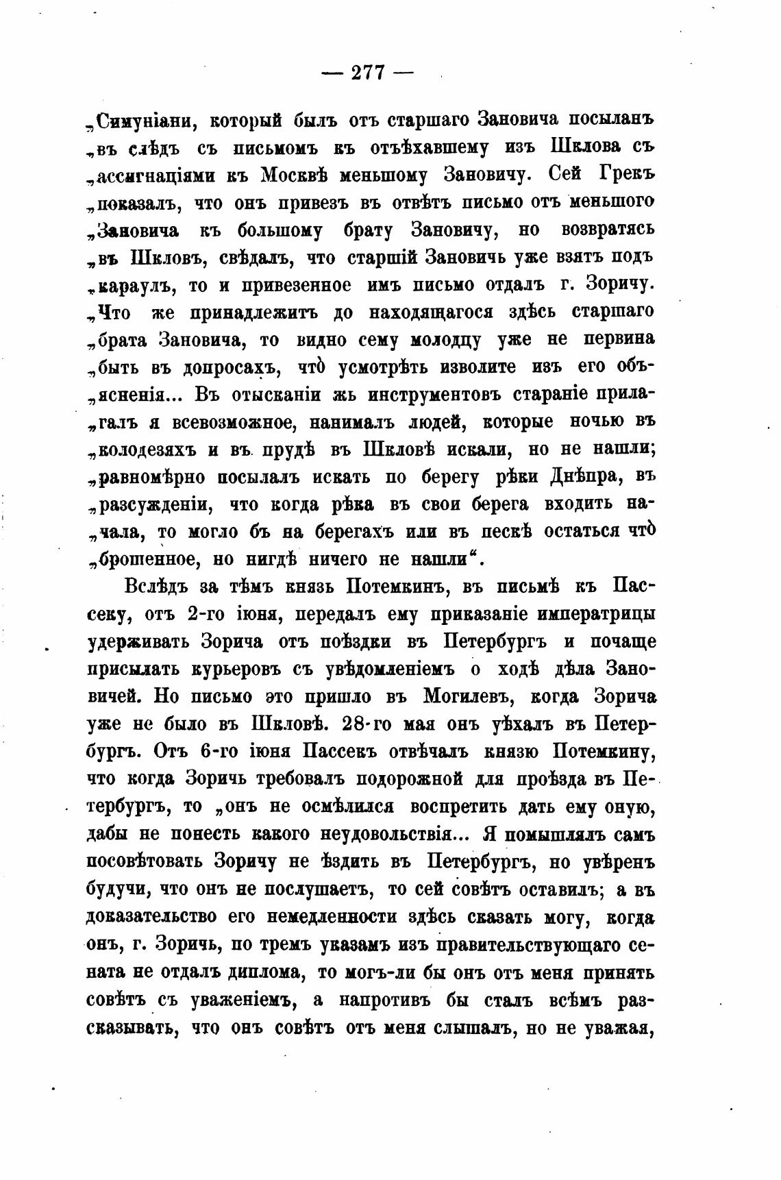 посов%товать Зоричу не 'ђздить въ Петербургъ, но уйренъ