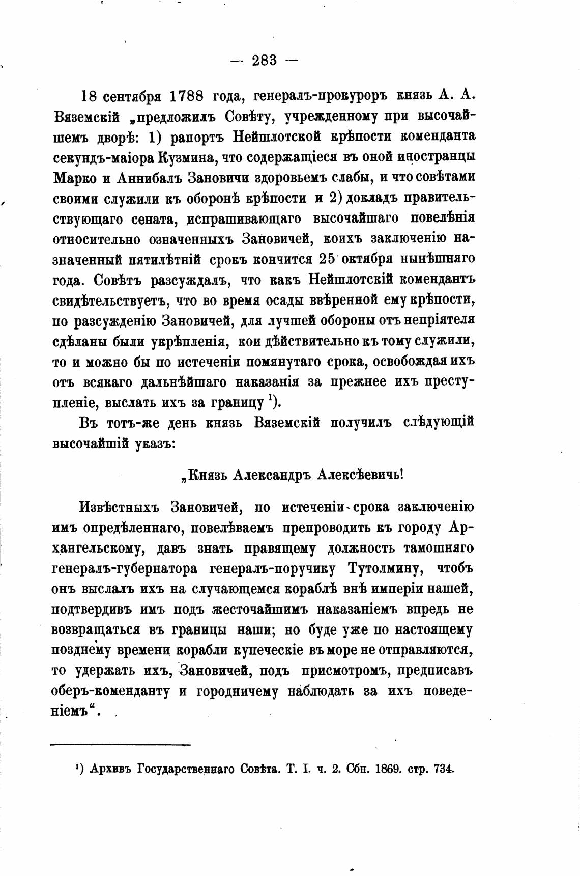 1) Архивъ Государственнаго Сов%та. Т. 1. ч. 2. Сбп. стр. 734.