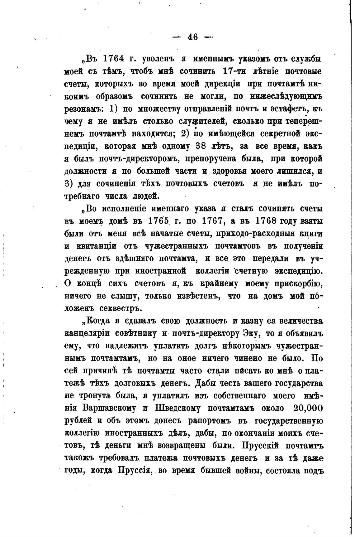 „Въ 1764 г. уволенъ я именнымъ увазомъ отъ смужбы