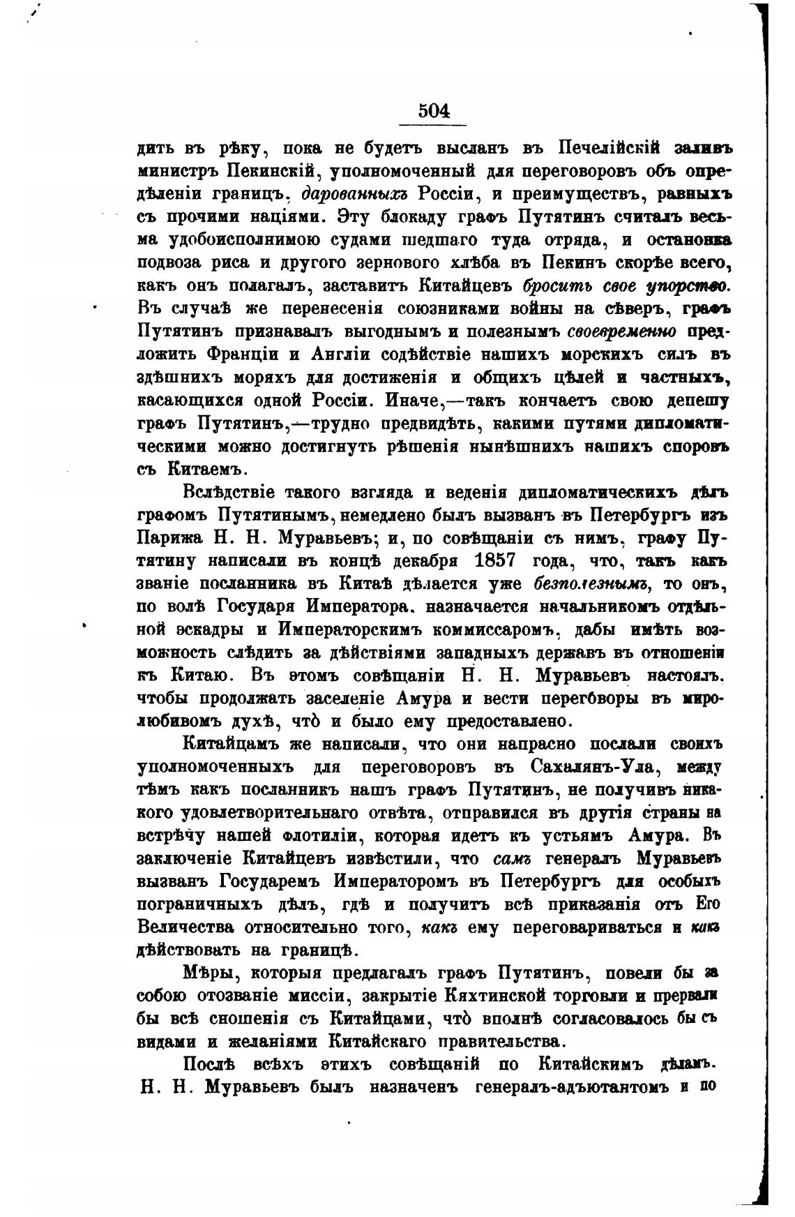 графомъ Путятинымъ, немерено быдъ вызванъ въ Петербургь изъ