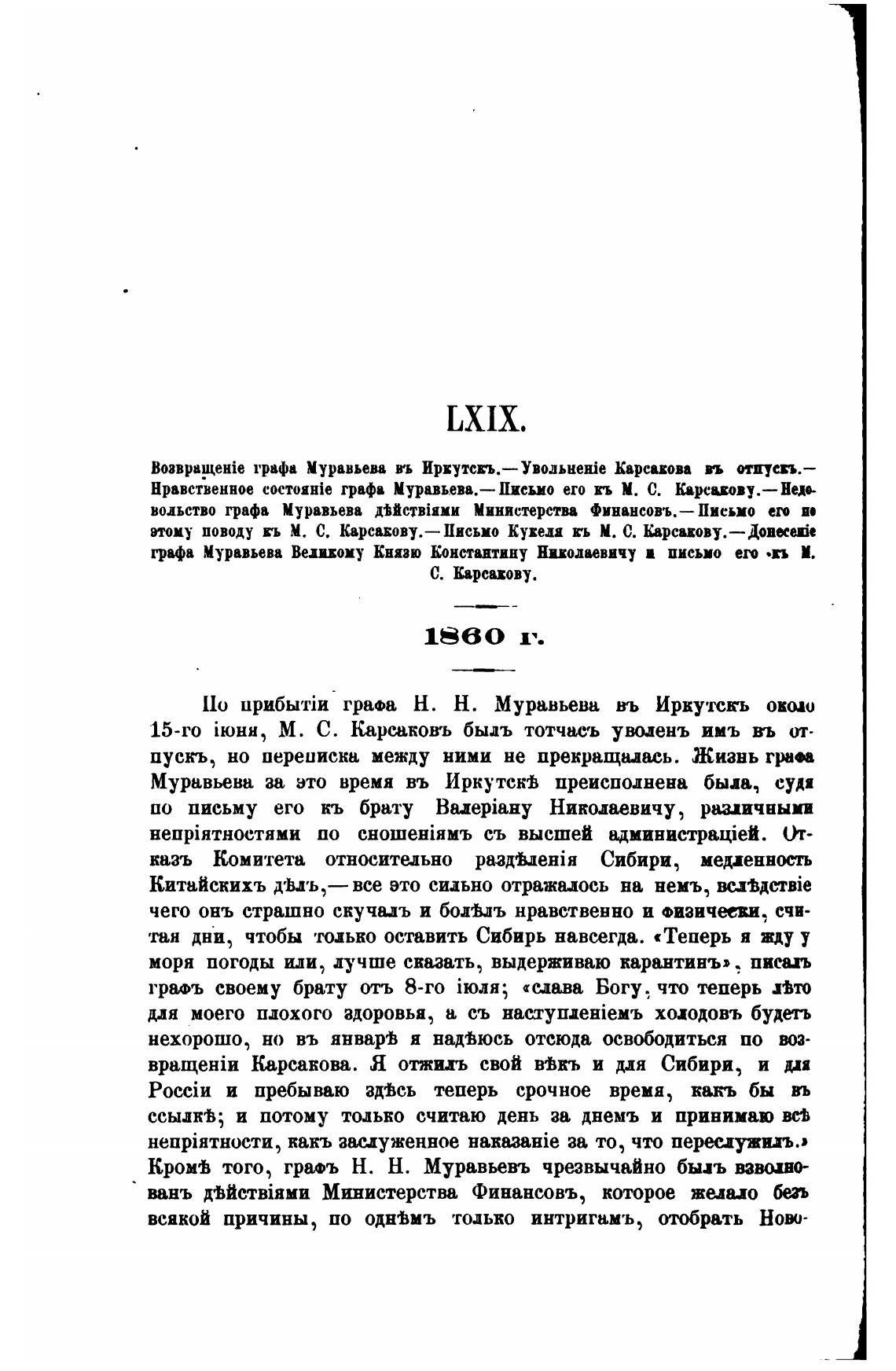 графа Муравьева въ Ирхутсгь.— Увольненје Карсахова въ отпуеп.—