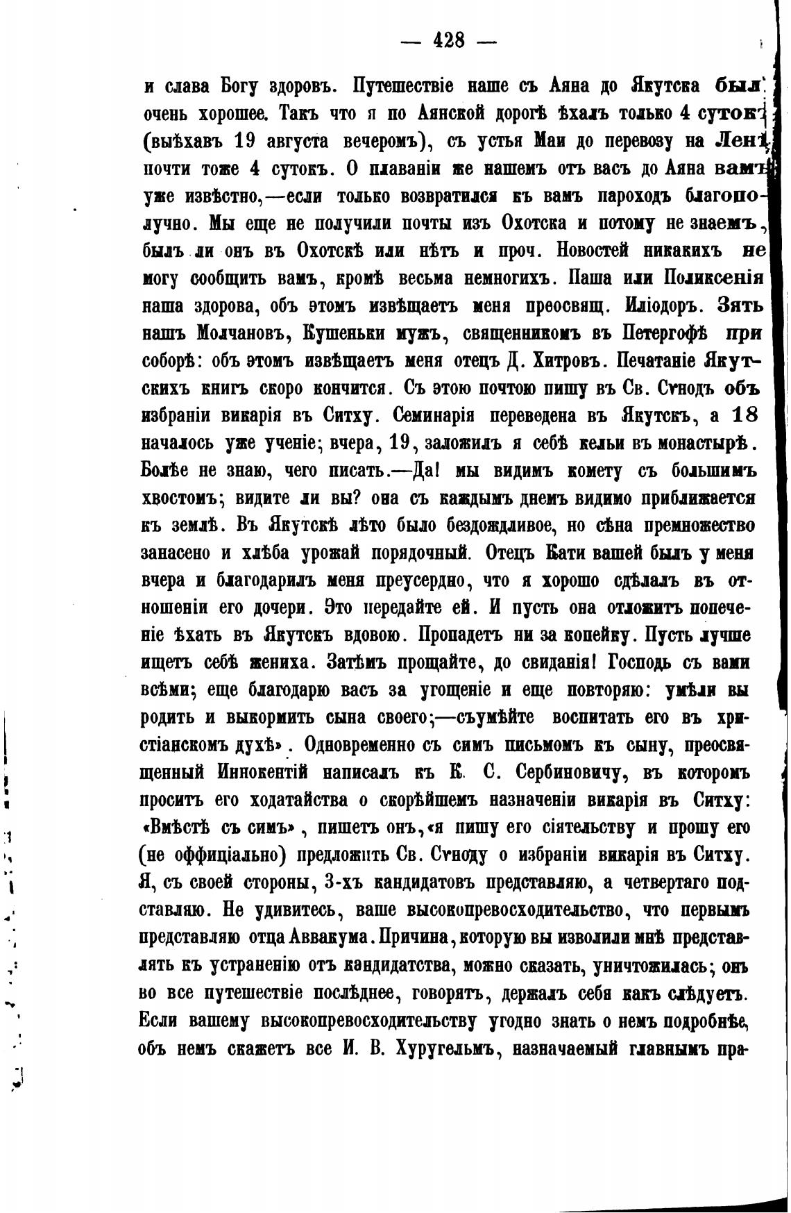 соб$: объ этомъ извВщаетъ меня отецъ Д. Хитровъ. Якут-