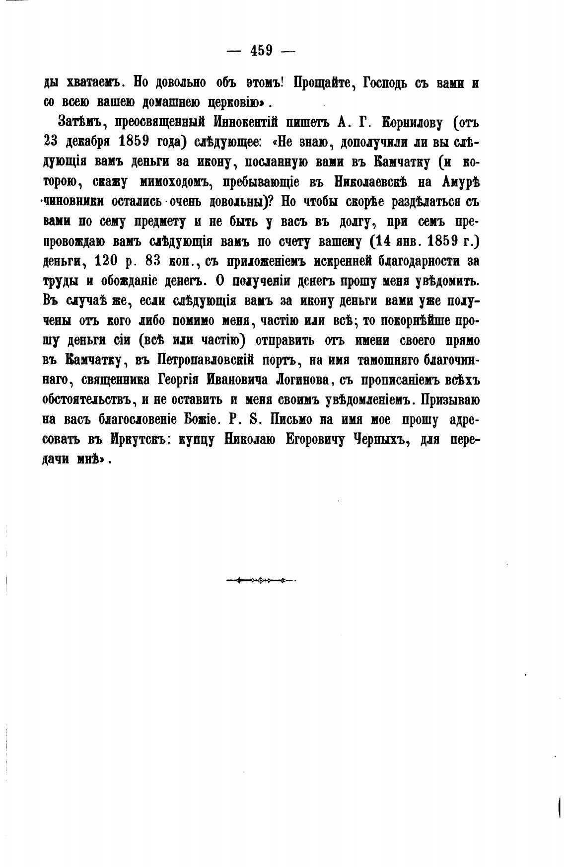 вамъ деньги за икону, посланную вами въ Камчатку (и но-