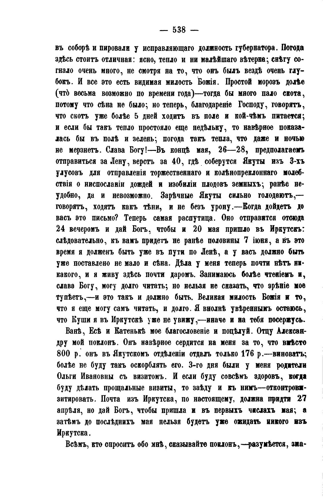 24 вечеромъ и дай Бољ, чтобы и 20 мая пришло въ Иркутскь.•