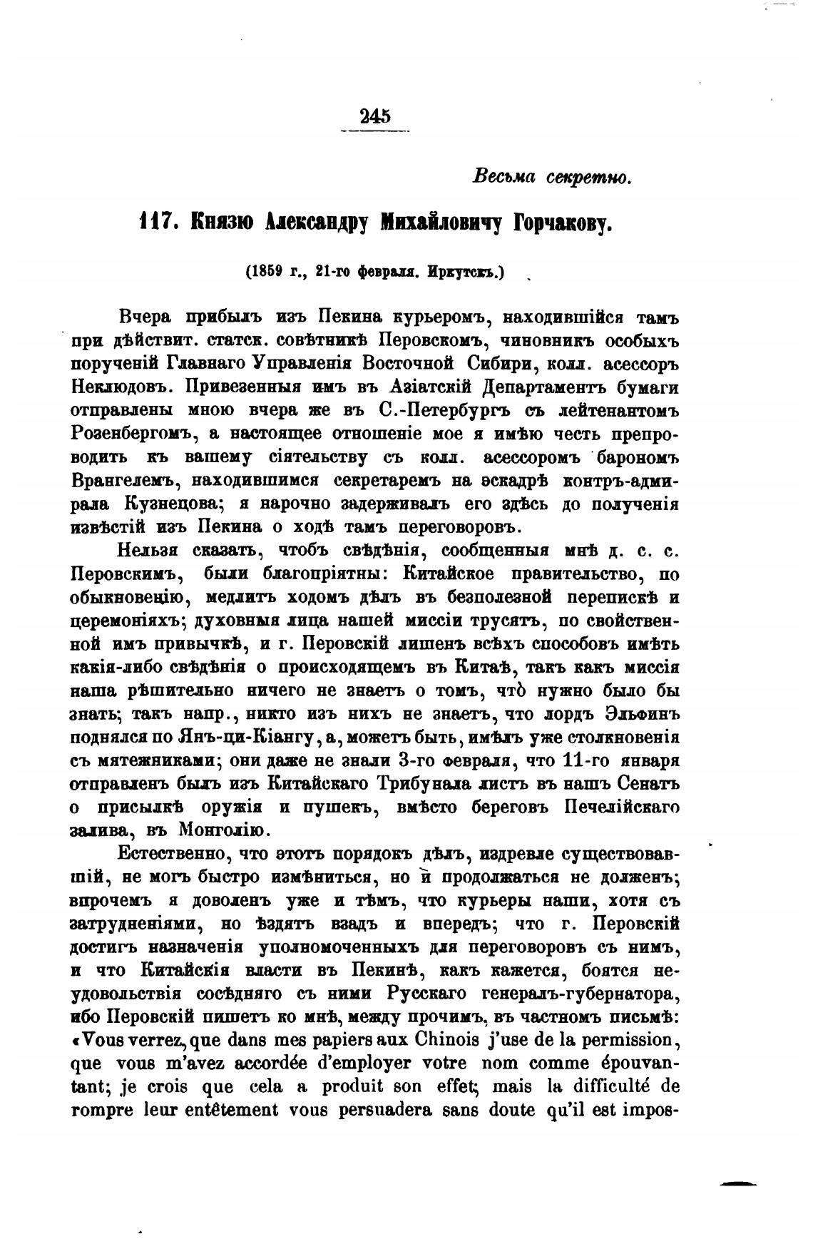 117. Князю Александру Михайловичу Горчакову.