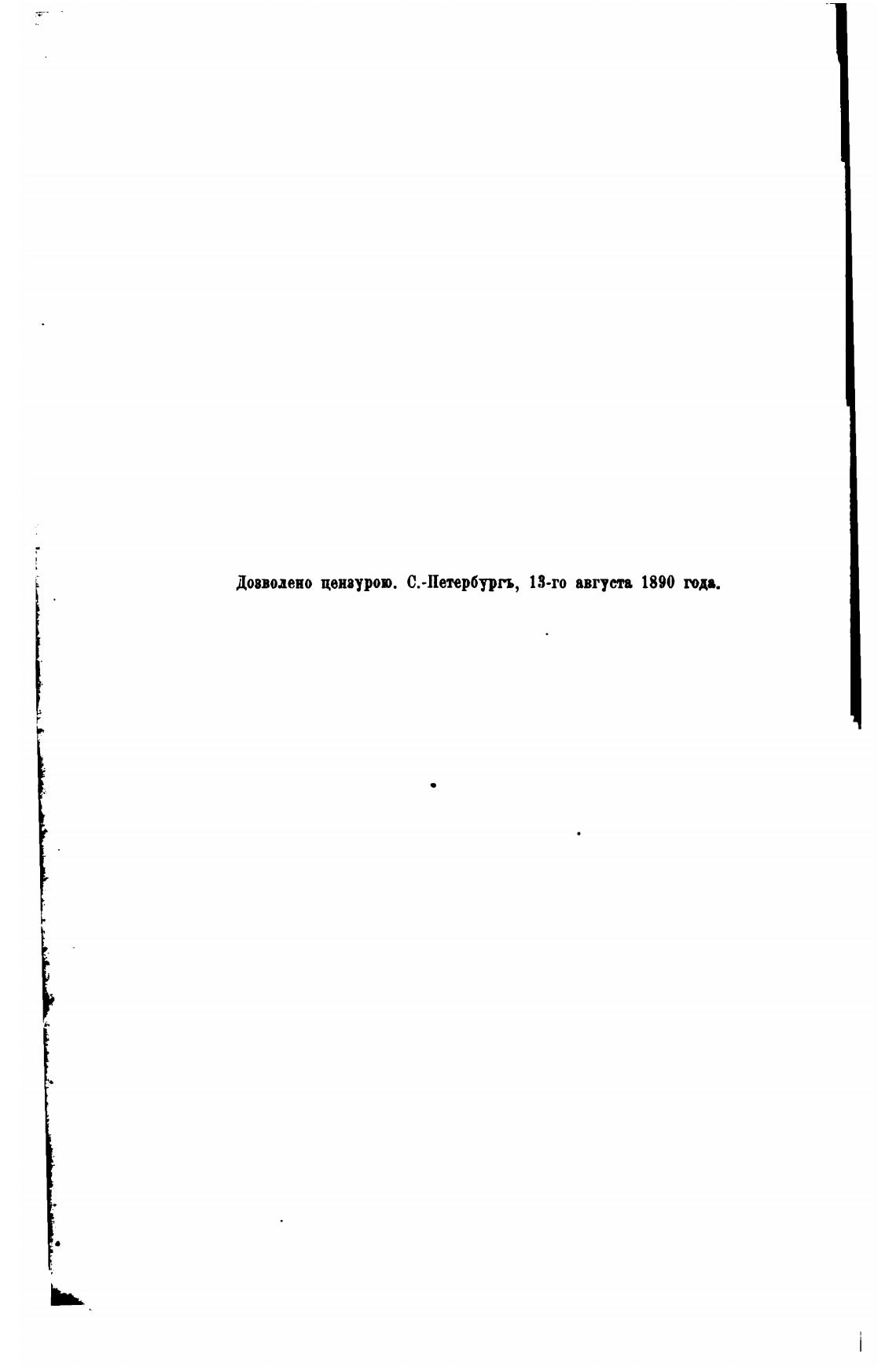 Дозволено цензурою. С.-Нетербургь, 13-го августа 1890 года.
