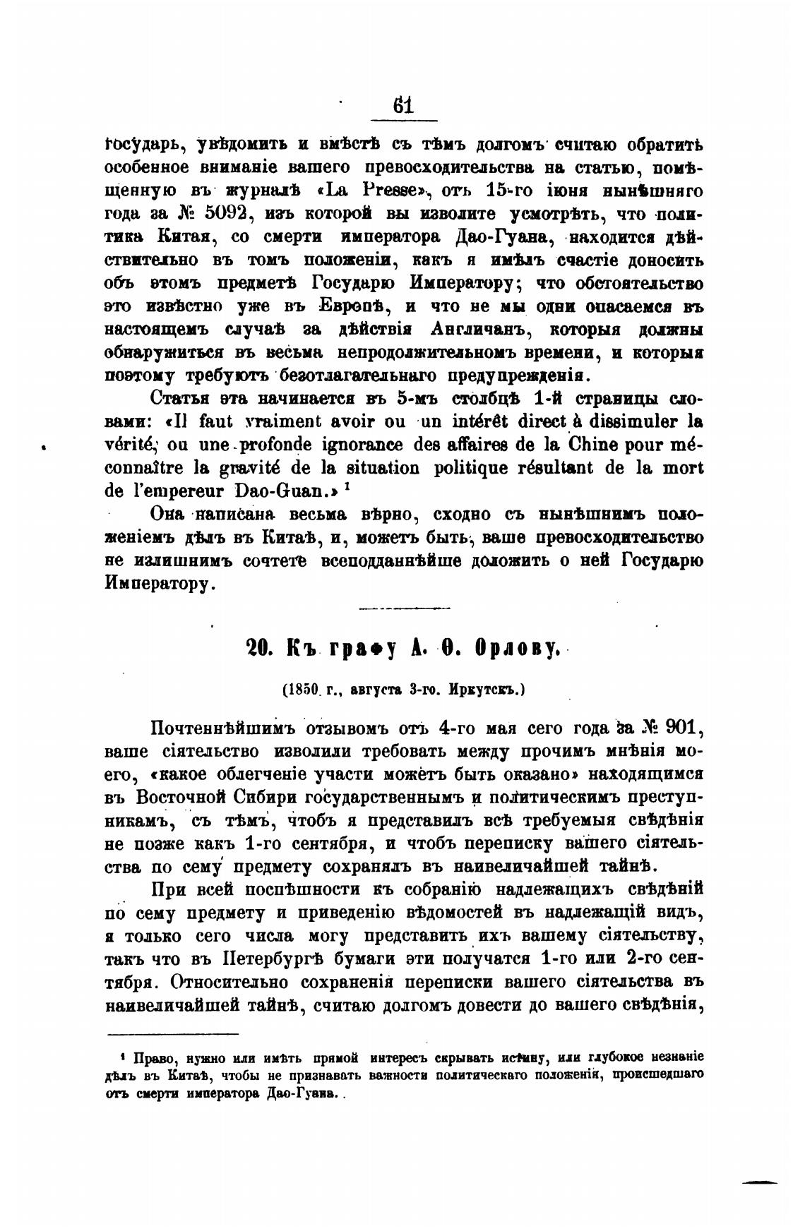 20. Кь гра•у А. 0. Орлову.