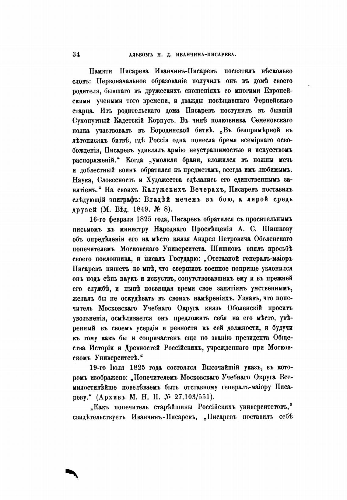 16-го февраля 1825 года, Писареуь обратился съ просительнымъ