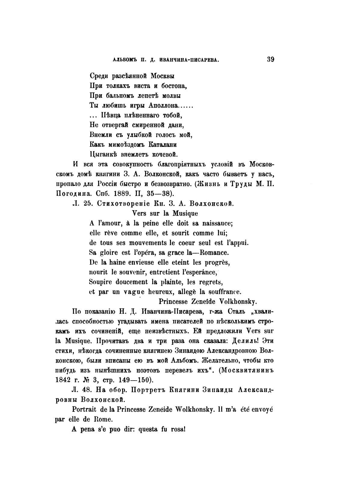 Л. 25. Кн. З. А. Волхонской.