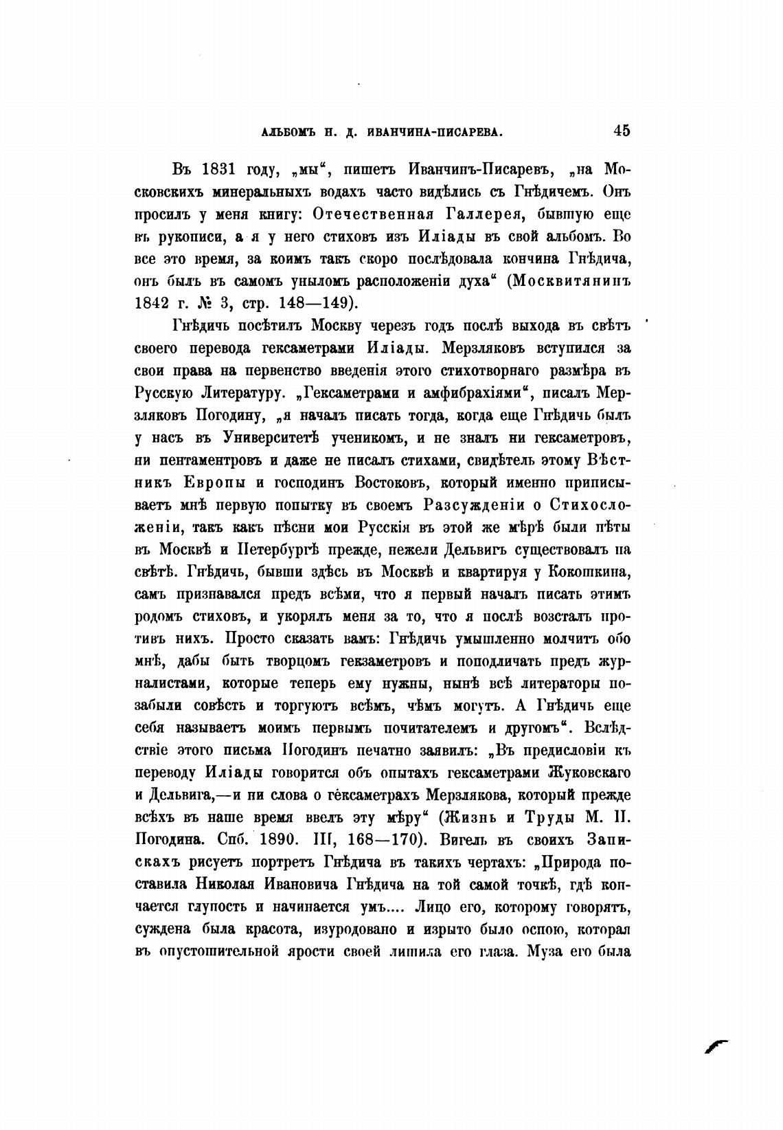 и Дельвита,—и ни слова о гексаметрахъ Мерзлякова, который прежде