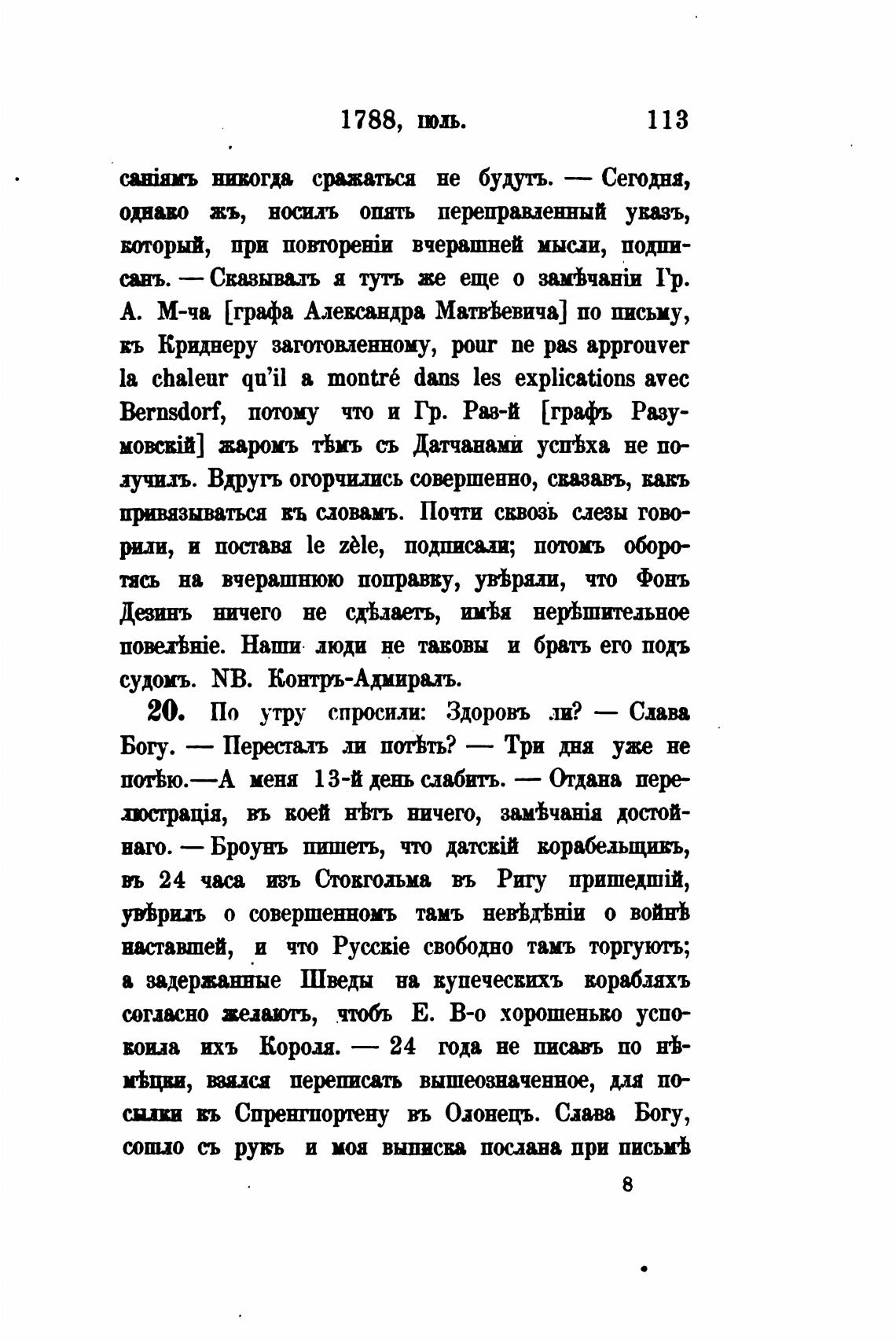 А. М-ча [графа Алеввндра МатуЬевича] по письму,