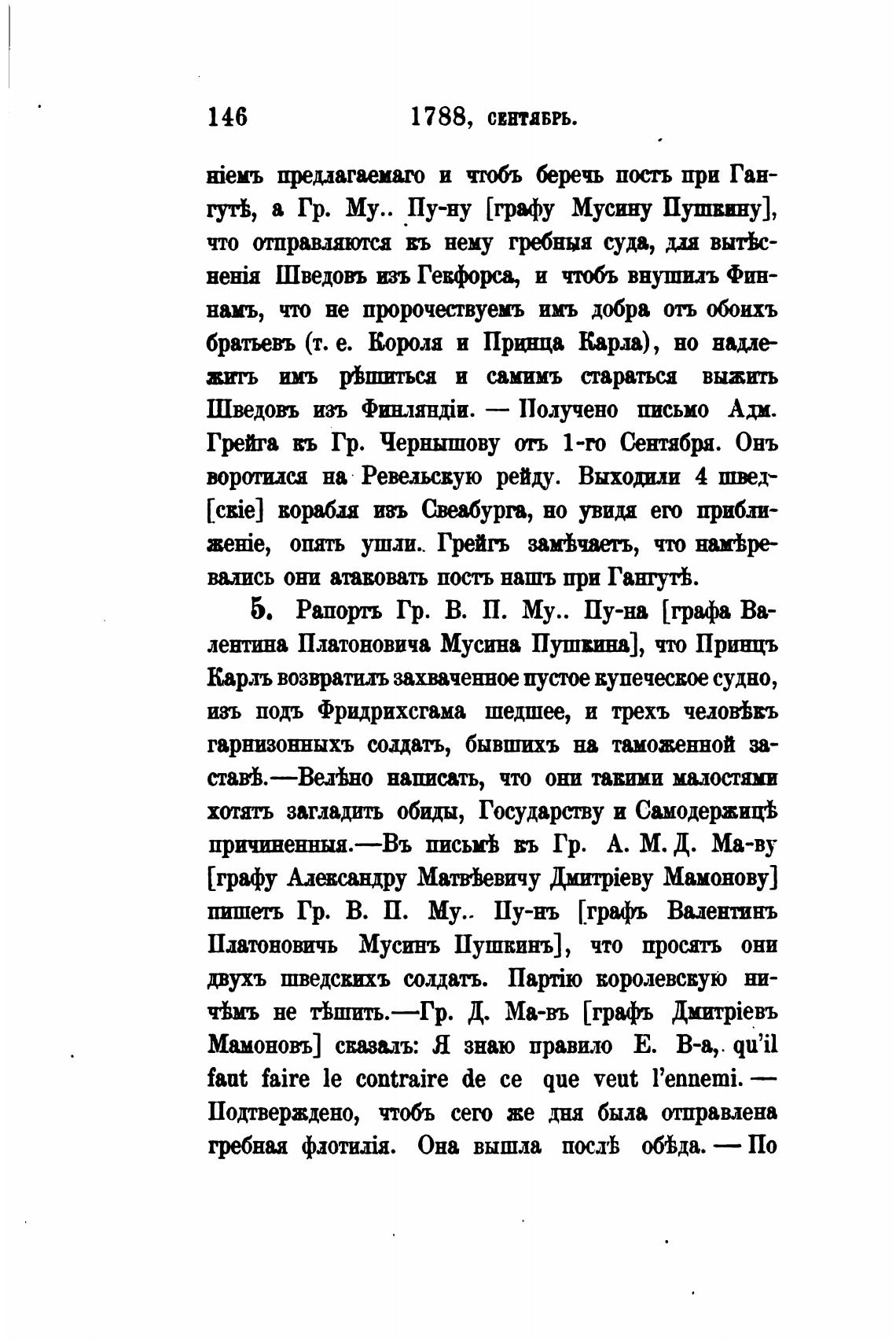5. Рапорть Гр. В. П. Му.. Пу-на [графа Ва-