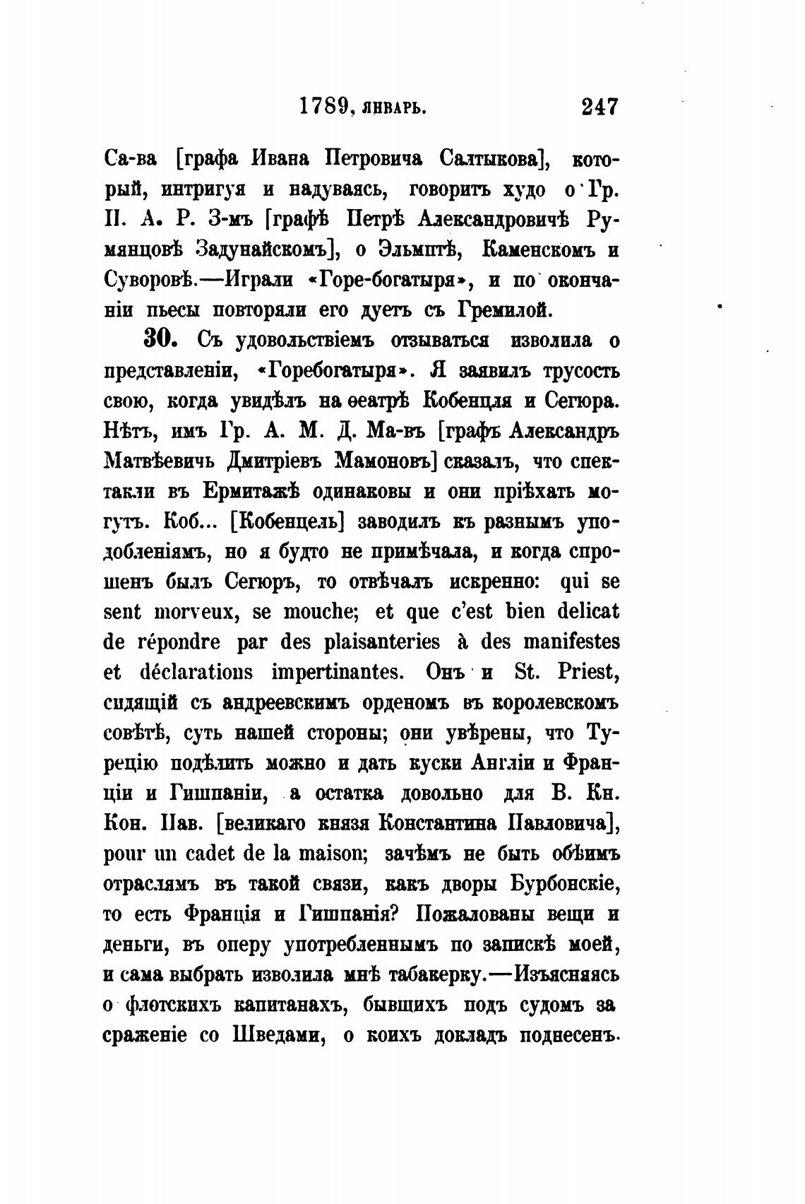 свою, когда увидЬъ на ееатр% Кобенцля и Сегюра.