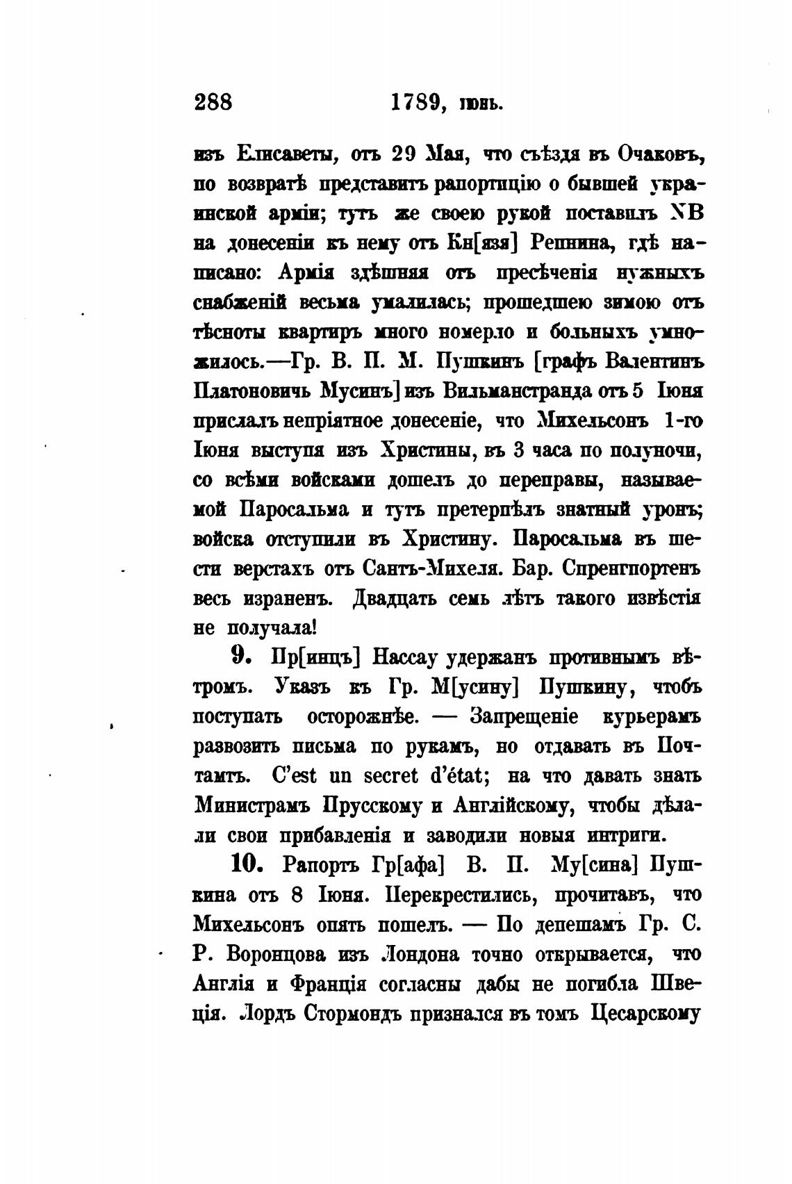 10. Рапортъ Гр[афа] В. П. Му[сина] Пуш-