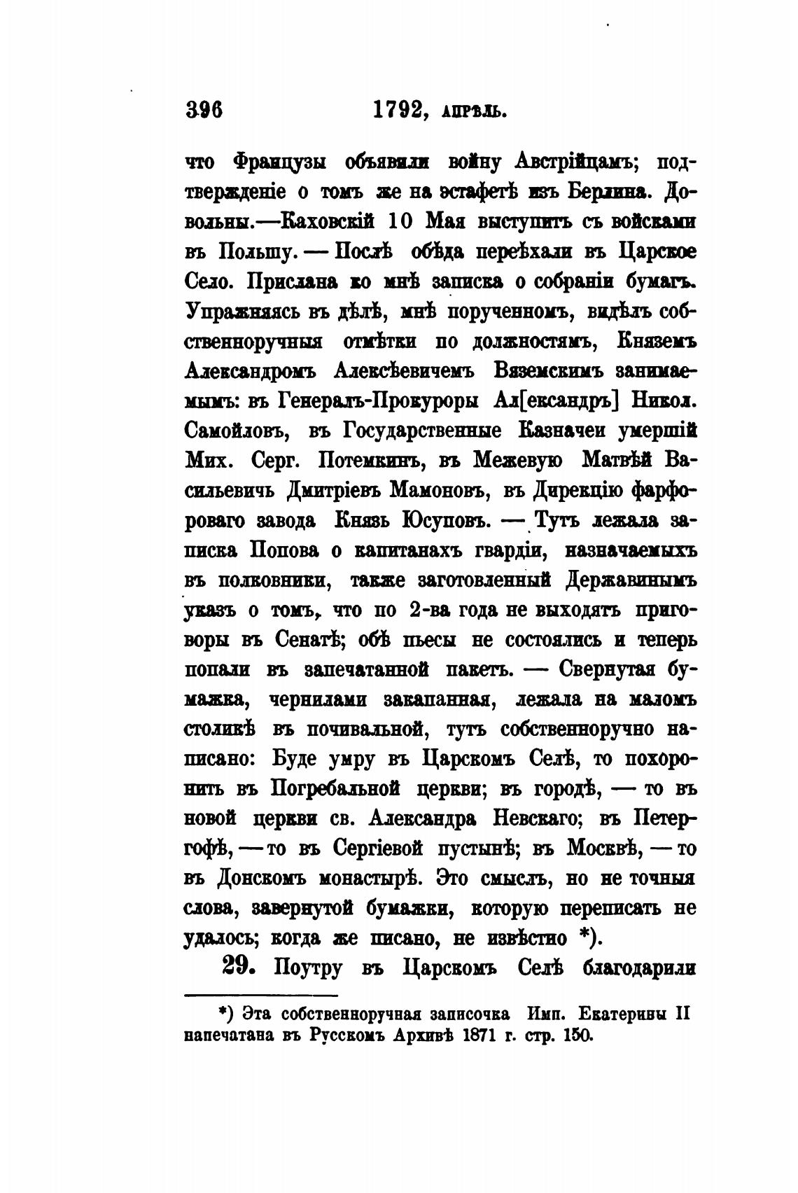 *) Эта собственноручнаа записочка Имп. Еватерквы П