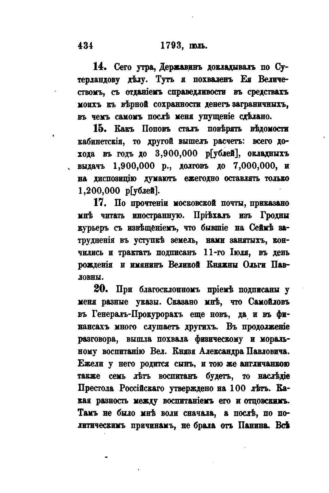 14. Сего утра, Державинъ довщщвалъ по Су-