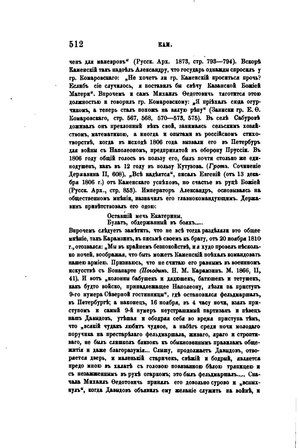 нодушенъ, въ 12 году въ пользу Кутузова. (Гротъ.