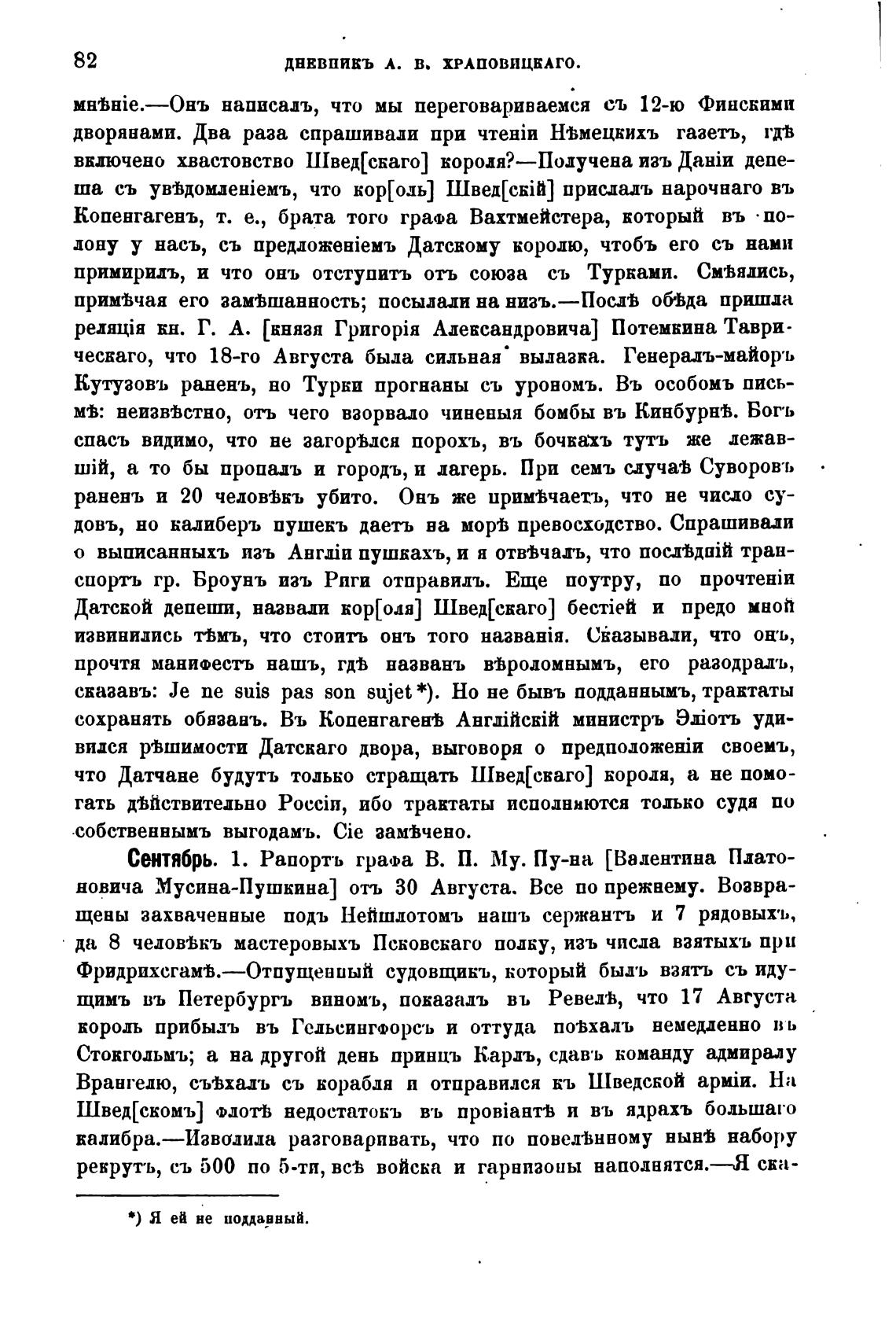 Сентябрь. 1. Рапортъ графа В. П. Му. Пу-на [Валентина Плато-