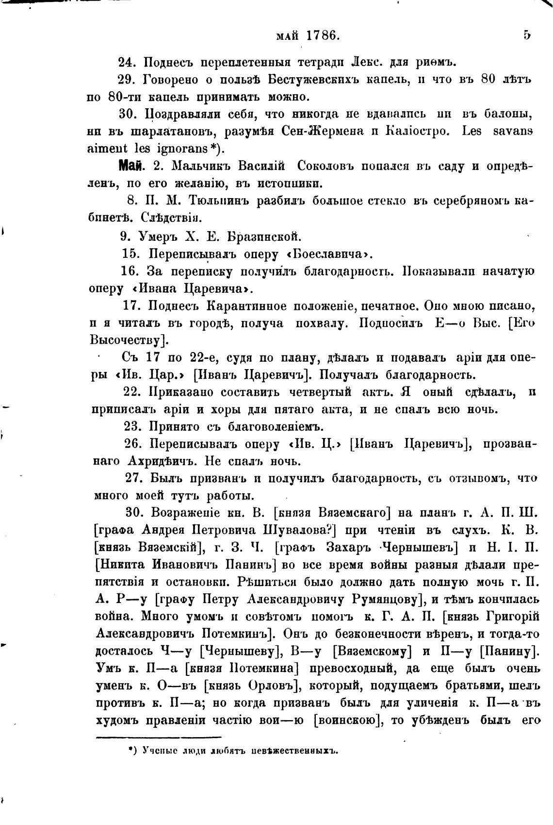 досталось Ч—у [Чернышеву], В—у [Вяземскому] и П—у [Панину].