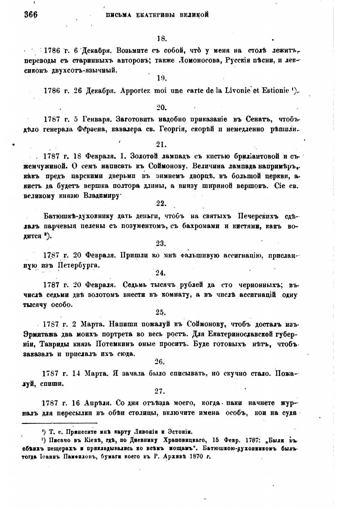 1786 г. 26 Декабря. Apportez moi ипе carte de la Livonie et Estionie