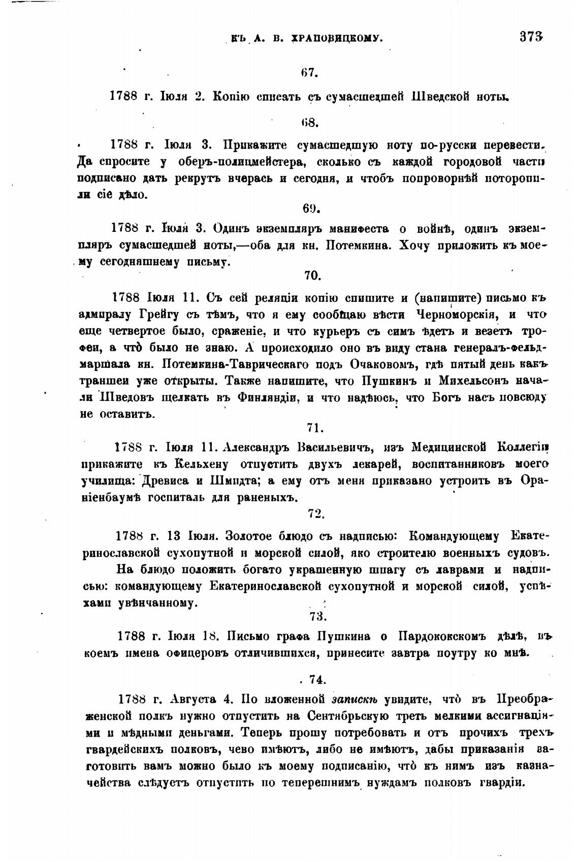 1788 г. 13 [юля. Золотое блюдо съ надписью: Командующему Екате-