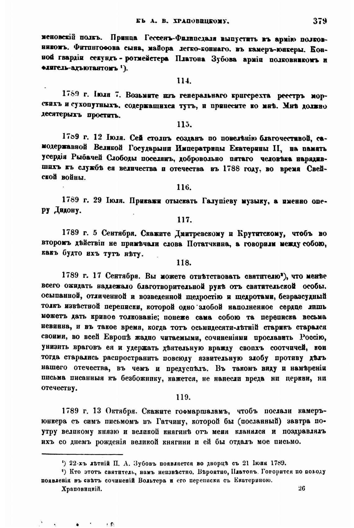 1789 г. 5 Сентября. Скажите Диитревскому и Круттскому, чтобъ во