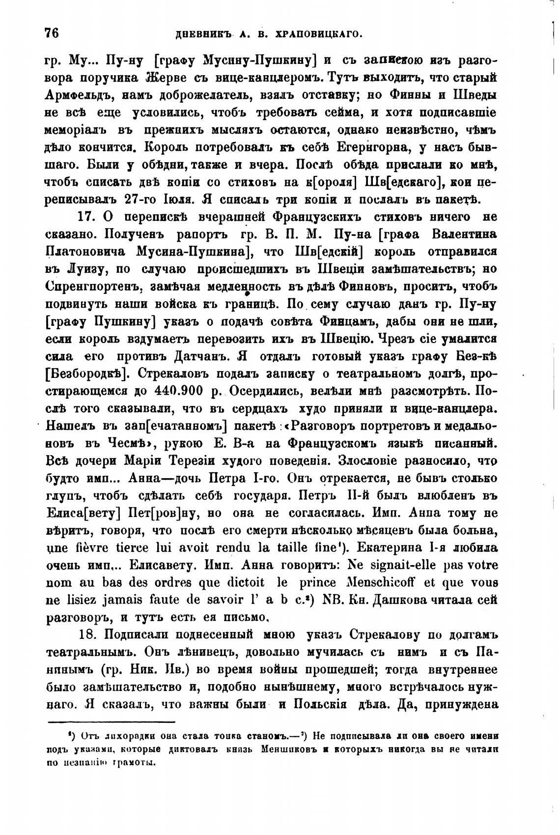 17. О переписхЬ вчерашней Французскихъ стиховъ ничего не