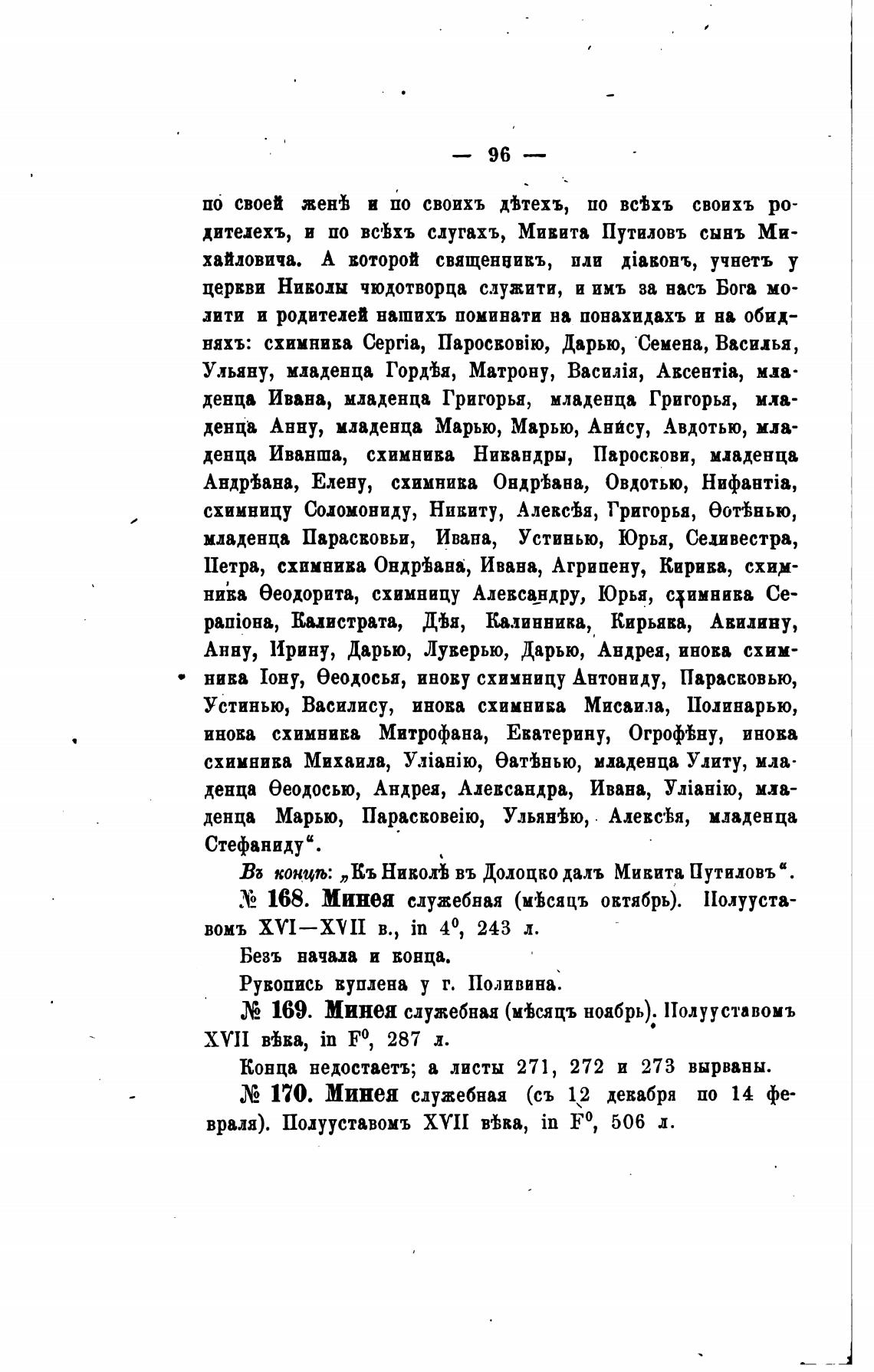 схимницу Соломониду, Никиту, Алевйя, Григорья, ботЬнью,