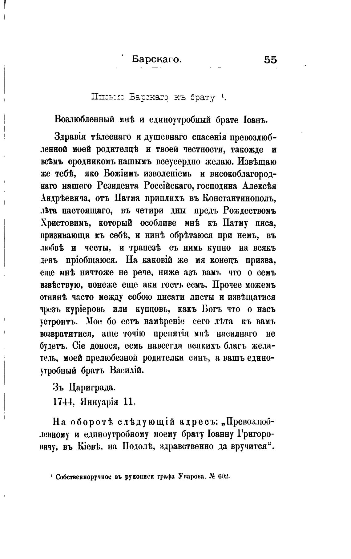 Иствевпоручное въ рукопиеп графа Уварова. Х 602.