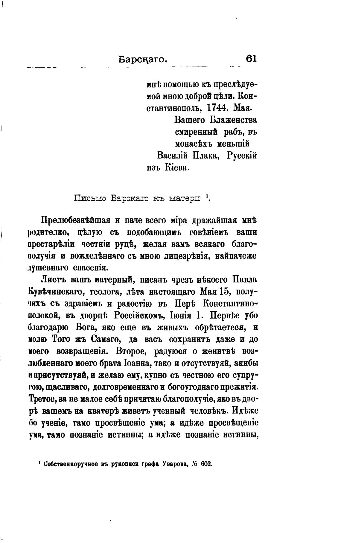 Листь вашъ матерный, писань чрезъ н'Ькоего Павла