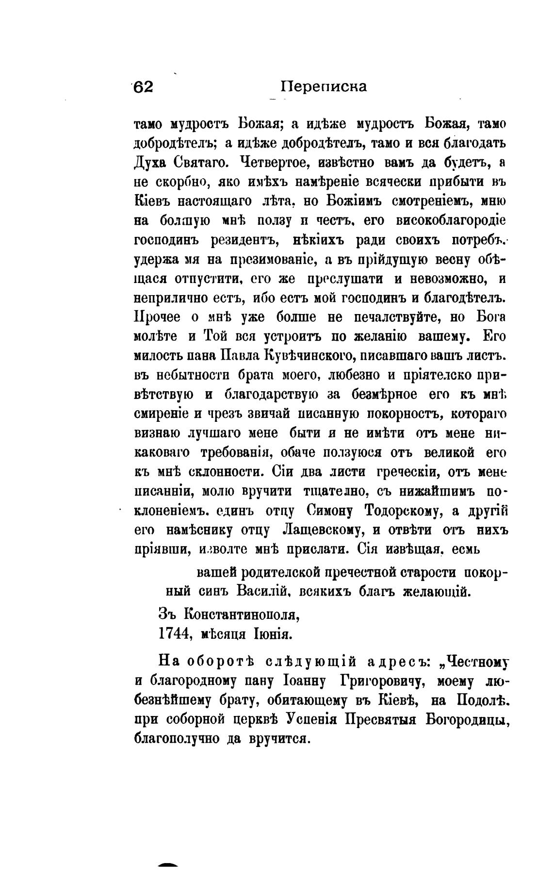 его нам±снику отцу Лащевскому, и отвМи отъ нихъ