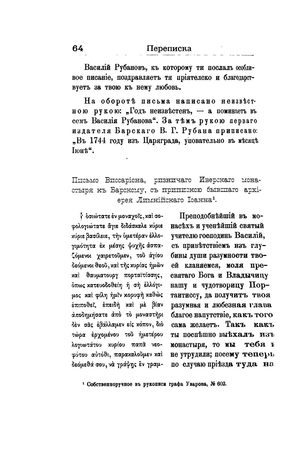 „Въ 1744 году изъ Царяграда, уиовательно въ