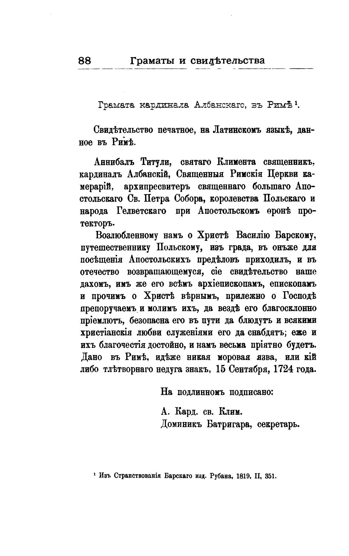 1 Изъ Барскато изд. Рубана, 1819, П, 351.