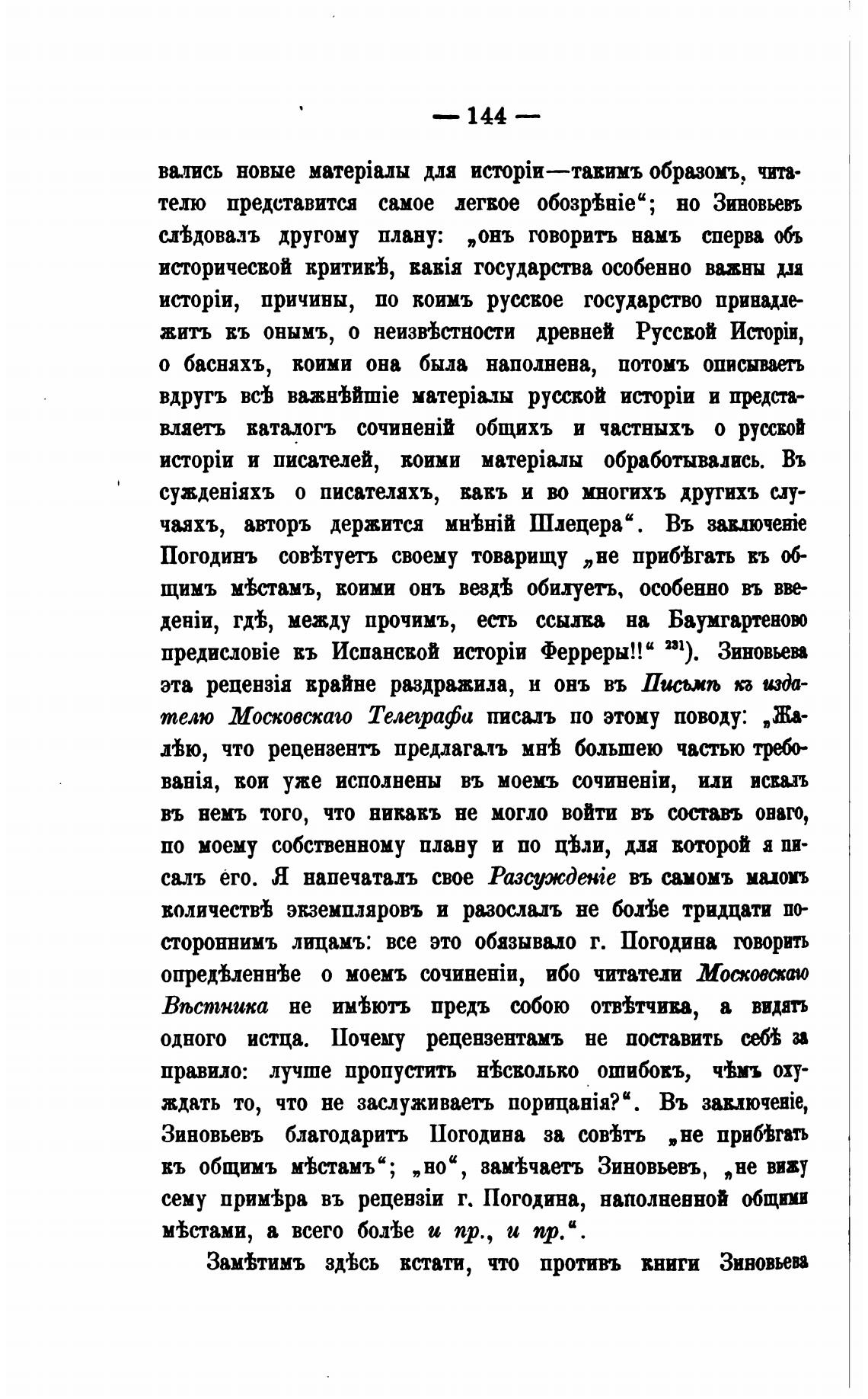 Зиновьевъ благодарить Погодина за сойть „не прибЖть