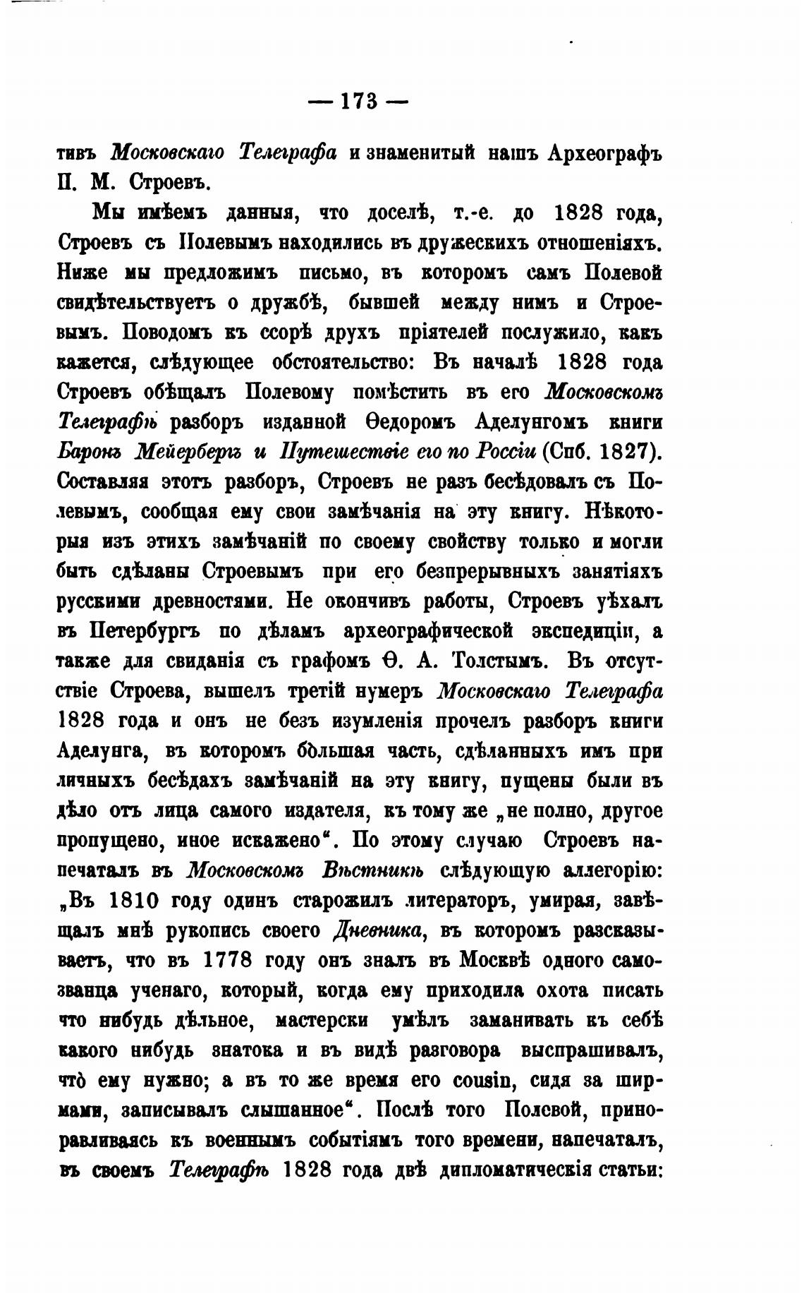 Ниже мы преддожимъ письмо, въ воторомъ самъ Полевой